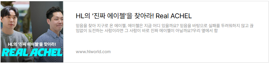 우리 옆에서 함께하는 ‘리얼 에이첼’을 찾아서 HL Mobility Labs가 나섰습니다. 동료들이 직접 뽑은 HL그룹의 ‘Real ACHEL’들을 지금 만나보세요.