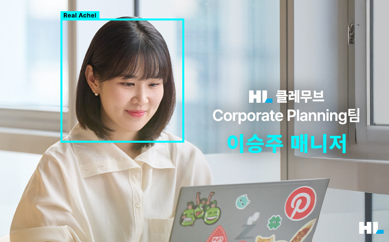 세 번째 리얼 에이첼은 HL클레무브 Corporate Planning팀의 이승주 매니저입니다. 이 매니저는 HL클레무브의 브랜드 및 전사 커뮤니케이션을 담당하고 있는데요. SNS 운영부터 월간 뉴스레터, 홍보물/영상 콘텐츠 기획, CES 등 전시 업무까지 사내외를 아우르며 다양한 이들과 소통합니다.